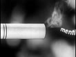 1960s Black and white Animation close up cigarette with animated words 'charcoal' and 'menthol' swirling around it / smoke emitting from cigarette / AUDIO