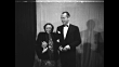 Actor Robert Montgomery poses for photos with his wife, Elizabeth Allen Montgomery, inside the Shrine Auditorium at the 19th Academy Awards; pan bank of photographers take photos