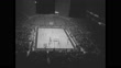 WS Basketball game is in progress / Ground shot pass and goal / CU women clapping and cheering / CU Bob Davies playing, Davies passes, receives ball and makes a goal / CU players on benches clapping and cheering / WS game / Ground shot follow of game, passes near camera, side view of L.I.U. goal / CU Davies on side line / WS game / MS ball misses goal / CU player falls near camera / CU nervous woman watching the game / Ground shot follow passing and L.I.U goal / MS bench players cheering