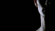 CU PAN black background to man's face in shadow/ TD muscular chest and abdominal muscles/ New York, New York - Vidéo HD
