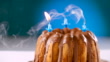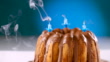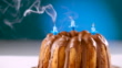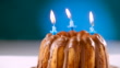 Blown out (twice)birthday candles on marble cake with chocolate nougat icing