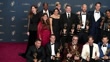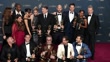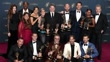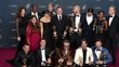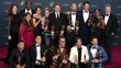 LOS ANGELES, CALIFORNIA - SEPTEMBER 14: Bryan Cranston, Kathryn Hahn, Seth Rogen, Dewayne Perkins, Chase Sui Wonders, Ike Barinholtz, Keyla Monterroso Mejia, Evan Goldberg, Peter Huyck, Alex Gregory, Frida Perez and cast and crew of "The Studio," winners of Outstanding Comedy Series, Outstanding Writing For a Comedy Series, Lead Actor in a Comedy Series, and Outstanding Guest Actor in a Comedy Series, pose in the press room during The 77th Primetime Emmy Awards at Peacock Theater on September 14, 2025 in Los Angeles, California. (Footage by Adam Jason Finmann/Getty Images)