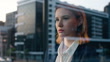 Femme d’affaires, réflexion et fenêtre dans la ville par les bâtiments, l’ambition et la planification de carrière dans le nouvel appartement. Jeune, réalisation ou idée dans un emploi d’entreprise ou de gestion avec costume dans le paysage urb - Vidéo 4K