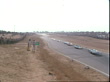 Can-Am race cars racing along esses at Riverside International Raceway / 1965 Pontiac Grand Prix pace car driving along racetrack / race car driver JIM CLARK riding in red 1965 Sunbeam Tiger convertible coupe / race car driver AUGIE PABST riding in silver Jaguar E-Type convertible coupe / race car driver DAN GURNEY riding in off-white convertible / Can-Am race cars racing along esses (s turns), one racer spinning out in dirt off-track. 1965 LA Times Grand Prix on October 31, 1965 in Riverside, California (Footage by Getty Images)