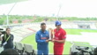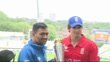 Champions Trophy Final build-up: Captains' photocall; ENGLAND: Birmingham: Edgbaston:EXTAlastair Cook (England Captain) and Mahendra Singh Dhoni (India Captain) posing for photocall with ICC Champion's Trophy