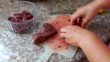 Fermez-vous vers le haut tiré femme d’âge moyen hacher le foie pour le repas - Vidéo HD