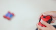 Relaxation at work or home concept. Radio-controlled car. How to ride toy car with remote control.