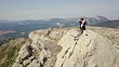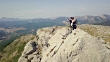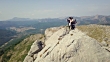 Couple taking pictures with an smartphone standing on the top of a mountain - Vidéo 4K