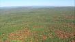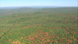 AERIAL Dense fall foliage in heavily wooded forest cut through with road / Amherst, Massachusetts, United States - Vidéo HD