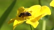 A Drone Fly, Eristalis tenax on a Marsh Marigold in a garden pond in Ambleside, Lake District, UK. - Vidéo 4K