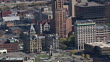 AERIAL Exterior of Syracuse Savings Bank building and surrounding buildings downtown / Syracuse, New York, United States - Vidéo HD