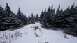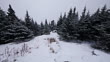 Fir woods, snow, snowflakes, bench, Stowe, USA - Vidéo HD