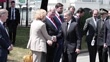 VILLIERS SUR MARNE, FRANCE - MAY 20: Former French president Nicolas Sarkozy shakes hands with elected representatives during a ceremony in tribute to late policewoman Aurelie Fouquet, killed in 2010 during a robbery attempt followed by a deadly chase on May 20, 2025 in Villiers Sur Marne, France. Aurelie Fouquet was the first female local police officer killed on duty in France. Her death contributed to the government's decision to permit local police officers to carry firearms. (Footage by Vincent Isore/IP3/Getty Images)