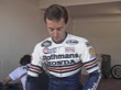 MADRID, SPAIN - MAY 4: (AUDIO OMITTED) Freddie Spencer stands in the garage area and puts on his crash helmet ahead of the Spanish Motorcycle Grand Prix at Circuito del Jarama on May 4, 1986 in Madrid, Spain. (Footage by Duke Video/Getty Images)