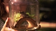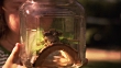 SLO MO CU Girl looking at frog in glass jar / Los Angeles, California, USA - Vidéo HD