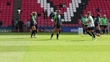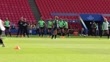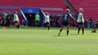 EINDHOVEN, NETHERLANDS - JUNE 2: Head Coach Tommy Stroot looks on as Alexandra Popp and players of VfL Wolfsburg warm up during a training session prior to the UEFA Women's Champions League final match between FC Barcelona and VfL Wolfsburg at PSV Stadion on June 2, 2023 in Eindhoven, Netherlands. (Footage by Lars Baron/Getty Images)