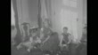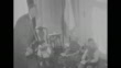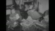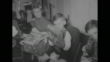 Title: "Holiday Callers - Gov. Herter Host At State House" superimposed over PAN from children singing Christmas carols to Governor Christian A. Herter, Republican Governor of Massachusetts; Santa Claus listening nearby / MS Herter seated behind desk at work / CU Herter takes off eyeglasses and looks up / CU man open his office door / ZI group of children carolers walking in / MS Herter talking to seated children; PAN Gov. looks up as Santa, carrying bag of toys, comes in; Herter sits down as Santa puts bag on desk; Herter proceeds to open bag / MS Herter giving toys to children carolers / CU little boy and girl watching / MS small boy gets up and receives gift from Herter / PAN seated children each with gift look up at camera / MS Herter and Santa look on / Note: exact day not known