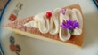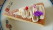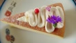 Gâteau japonais avec de la crème sur le dessus placé sur une table en bois - Vidéo 4K