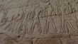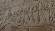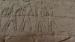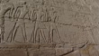 LUXOR, EGYPT - CIRCA 2002: Karnak Temple Complex. Pan left on relief of the gods Anubis, Khnum, Horus and Seth and Pharaoh dragging a boat.