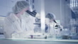 Équipe de laboratoire travaillant avec des échantillons biohazardous. À l’aide d’un microscope - Vidéo 4K