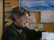 Grassi looking thru papers TILT UP poster for event to commemorate the 7th anniversary of the Mafia killing of her husband Libero