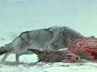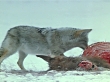 WWWA: ROCKY MOUNTAIN BIGHORN: GRAPHIC: WS Coyote eating meat from exposed carcass in snow.