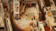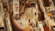 Miniature construction site from above. Crane flipping over formwork panel. Time-lapse tilt-shift toy look - Vidéo 4K