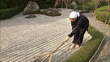 MS PAN Monk raking rock garden at Taizohin temple, Kyoto, Japan - Vidéo HD