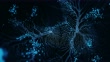Neuron system hologram - 3d rendered video of Neuron cell network on black background. Hologram view interconnected neurons cells with electrical pulses. Conceptual medical image. Glowing synapse. Healthcare concept.