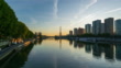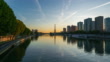 Paris skyline, Seine river, and Eiffel tower - 4k time lapse from dawn to day with twilight sky and reflection