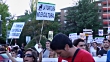 MADRID, SPAIN - AUGUST 23: People hold placards and chant slogans during a protest against the bull-fighting that will start tomorrow in the San Sebastian de los Reyes district of Madrid, Spain on August 23, 2015. (Footage by Berkan Unlu/Anadolu Agency)