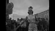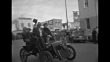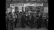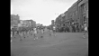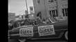 Lead, SD: people in period costumes, including a cowboy with a horse, stand in front of entrance to the Homestake Theatre for the Black Hills area premiere of film 'Calamity Jane'; men shake hands; theater marquee announces premiere / older man and young woman, in period costume, smile at each other / Rapid City, SD: traffic moves through city street / side view brass band stands in street, ready for parade, as majorette twirls baton in foreground; Elks Theatre, site of the Upper Midwest premiere of 'Calamity Jane' film, stands in background / men on horseback stand in street, facing camera, as car approaches in background / smiling majorette twirls baton / tilt-down shot men and women ride horses on street, followed by boy on Shetland pony / WS the original Deadwood stagecoach approaches, turns corner and proceeds as passengers wave from inside it / group of people ride in Model T-type old car / WS brass band and baton twirlers approach, turn corner / procession of old model T-type cars / horseback riders approach, pass camera / Native Americans ride in a convertible; one man has pigtails, the other wears a headdress, and a child sits between them; the one in the headdress waves / tilt-down the Native Americans in the convertible; they wave as they move along street / montage model T-type cars drive in parade / baton twirlers and brass band perform in street in front of Elks Theatre / montage Miss North Dakota and the Queen of Rapid City pass in a convertible / montage the Queen of Sturgis and Queen of Custer pass in convertible / spectators along street / montage various Queens pass / man, woman, and two small boys pass in an old car and spectators wave / tilt up to marquee of Elks Theatre with marquee touting premiere, and crowd beneath / Deadwood Stage Coach passes Elks Theatre; spectators wave at it