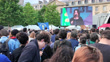 PARIS, FRANCE - JULY 3: (SPEECH) People listen to the speech of Agnès Jaoui during a demonstration against the far right on July 3, 2024 in Paris, France. Several thousand people gathered against the far right on Thursday evening at Place de la République in Paris, three days before the first round of the legislative elections in which the National Rally is the clear favorite. In Paris, speeches by personalities, activists and mini-concerts alternated during a festive event convened by the media, unions and associations.(Footage by Photo and Co/Getty Images)