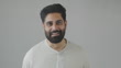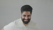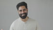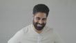 Portrait d’un homme riant joyeusement sur fond gris - Vidéo 4K