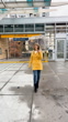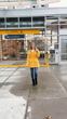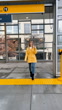 A woman walking with an umbrella at a light rail station in Bellevue Washington. This is a newly opened station which is part of the 2 line. The 2 line will eventually run between Redmond and Seattle.