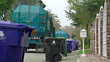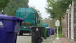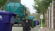 MS Rear view of garbage trucks picking up garbage bins, North Hollywood, California, USA - Vidéo HD