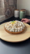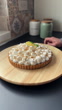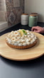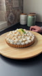 Side view of a man’s hand gently rotating a homemade lemon meringue tart (Tarte au citron meringuée) placed on a wooden turntable - Vidéo 4K