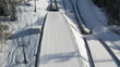 Lillehammer, Norway. Ski hills. Mountainous areas. Winter. Snowy terrain. Sunny weather. Photos from a drone