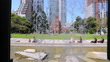 Slow motion shot of waterfall against at Yerba Buena Gardens during sunny day - Exploring San Francisco from above