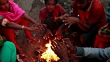 DHAKA, BANGLADESH - JANUARY 08 : Slum children makes fire to warm them in cold wave in Dhaka, Bangladesh, on January 08, 2018.The cold wave continues to disrupt life across the country in Bangladesh. According to the Met office the country lowest temperature in Panchaggarh's Tetulia fallen to 2.6 degrees celsius, the lowest on record in Bangladesh history.