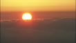 Sun setting behind dense layer of cloud covering base of mountain range Kiso-Komagatake