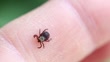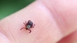 Tick - infectious insect on the skin of a child. Wood tick. Lyme disease