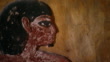 LUXOR, EGYPT - CIRCA 2002: Tomb of Seti I. CU detail of the painted face of a man on a mural in the tomb.