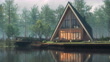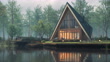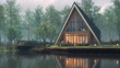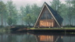 Triangulaire Moderne Lake House à l’automne - Vidéo 4K