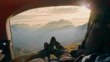 MS Deux campeurs se reposant dans le coffre de la voiture dans les montagnes - Vidéo 4K
