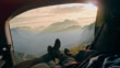 Medium shot of two campers resting in the trunk of the car in mountains at sunset. Low angle shot of their feet. Mangart or Mangrt is a mountain in the Julian Alps, located on the border between Italy and Slovenia. Shoot in 8K resolution.