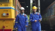 4K Two Maintenance Engineers Working In Railroad Station