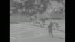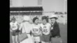 Title: "Vancouver B.C. - British Empire Games" superimposed over Vancouver City showing harbor and mountain / Aerial Empire Stadium / PAN athletes lined up on field / CU Field Marshal Earl Harold R.L.G. Alexander at microphone / WS crowd / Follow side view follow Men's 100-yard dash final - winner running in 4th lane from camera position / Front view finish of Men's 100-yard dash - Michael (Mike) Agostini, Villanova sophomore from Trinidad, crossed finish line the winner / LS crowd applauding / CU Agostini / Follow Women's 100-yard dash Final - Marjorie Jackson-Nelson, Australian runner, crosses finish line, camera pans to crowd / Jackson-Nelson being kissed by friends