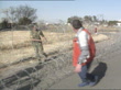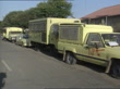 SOUTH AFRICA: CONFLICT: AWB violence; 22.00 (Aslett,Judy)SOUTH AFRICA: Ventersdorp MS SIDE plain clothes policeman and soldier pulling coils of barbed wire along R-L MS Barbed wire loaded onto carrier MS SIDE yellow security vehicles parked at roadside PAN L-R van CMS Slashed tyre on van and 'NP' grafitti on side