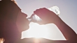 Jeune femme l'eau potable après la séance d'entraînement de remise en forme - Vidéo 4K